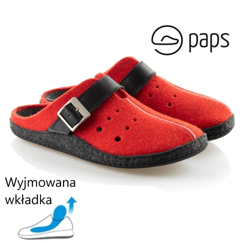 Paps męskie klapki domowe do wkładek ortopedycznych np. Vasyli Paps 1051-005 filc czerwony